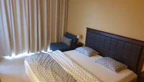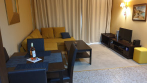 Apartmán dispozične pozostáva z vstupnej haly, priestornej obývacej izby s kuchýnským kútom a jedálenskou časťou, samostatná spálňa, kúpeľňa s WC, terasa.