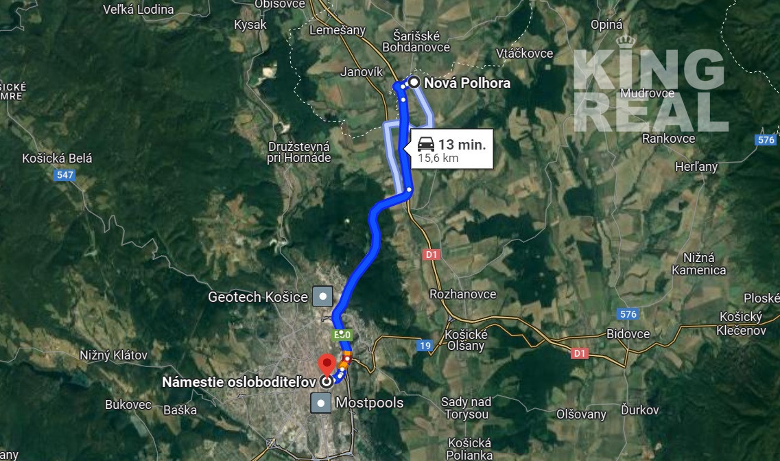Nová Polhora (15,6 km / 13 min.) do centra Košíc