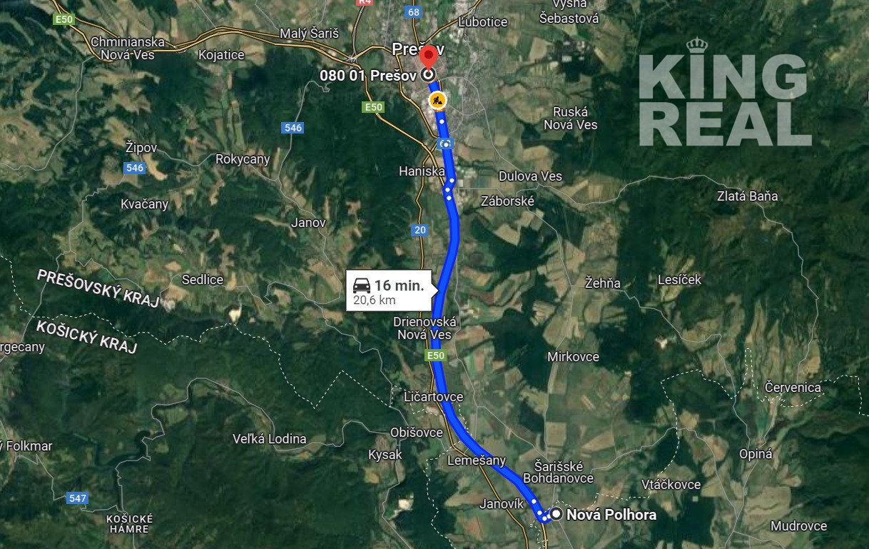 Nová Polhora (20,6 km / 16 min.) do centra Prešova