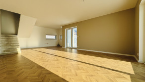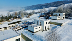 Dennú zónu tvorí priestranná obývačka prepojená s kuchyňou a jedálňou, s výstupom na terasu a možnosťou osadenia krbovej pece. Dom disponuje až 3 terasami, garážou s prechodom do interiéru a nízkymi mesačnými nákladmi vďaka teplovodnému podlahovému kúreniu a tepelnému čerpadlu.