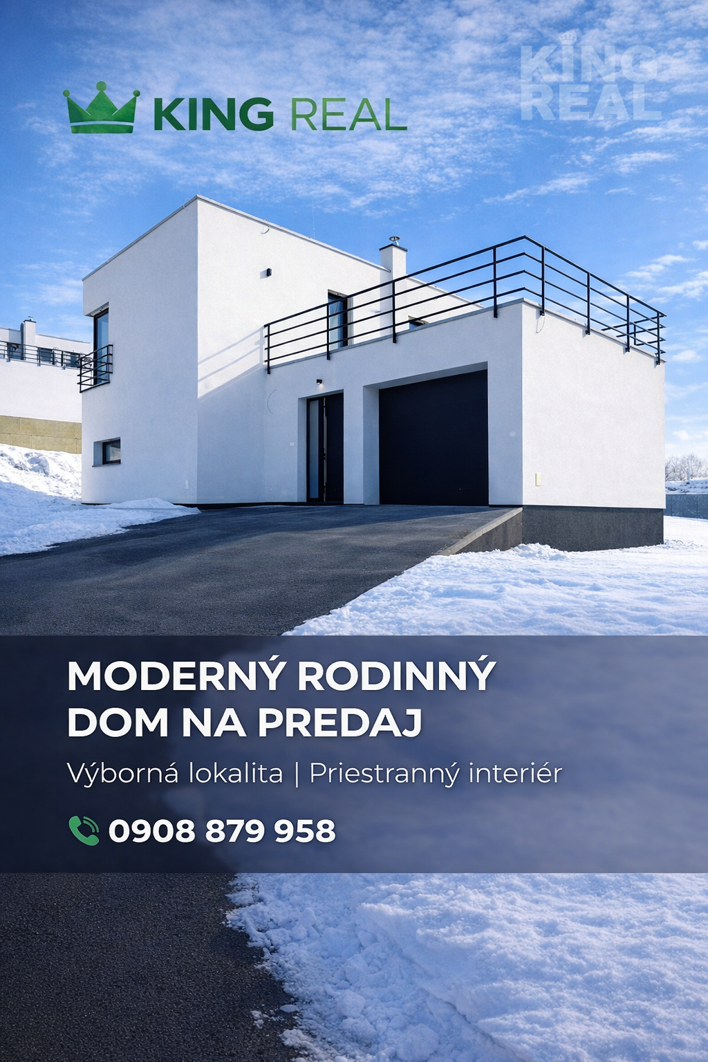 KING REAL Vám exkluzívne ponúka na predaj moderný 2-podlažný rodinný dom kolaudovaný v roku 2025, ktorý zaujme svojím vzdušným interiérom, veľkorysým presklením a pohodlnou dispozíciou pre rodinné bývanie.