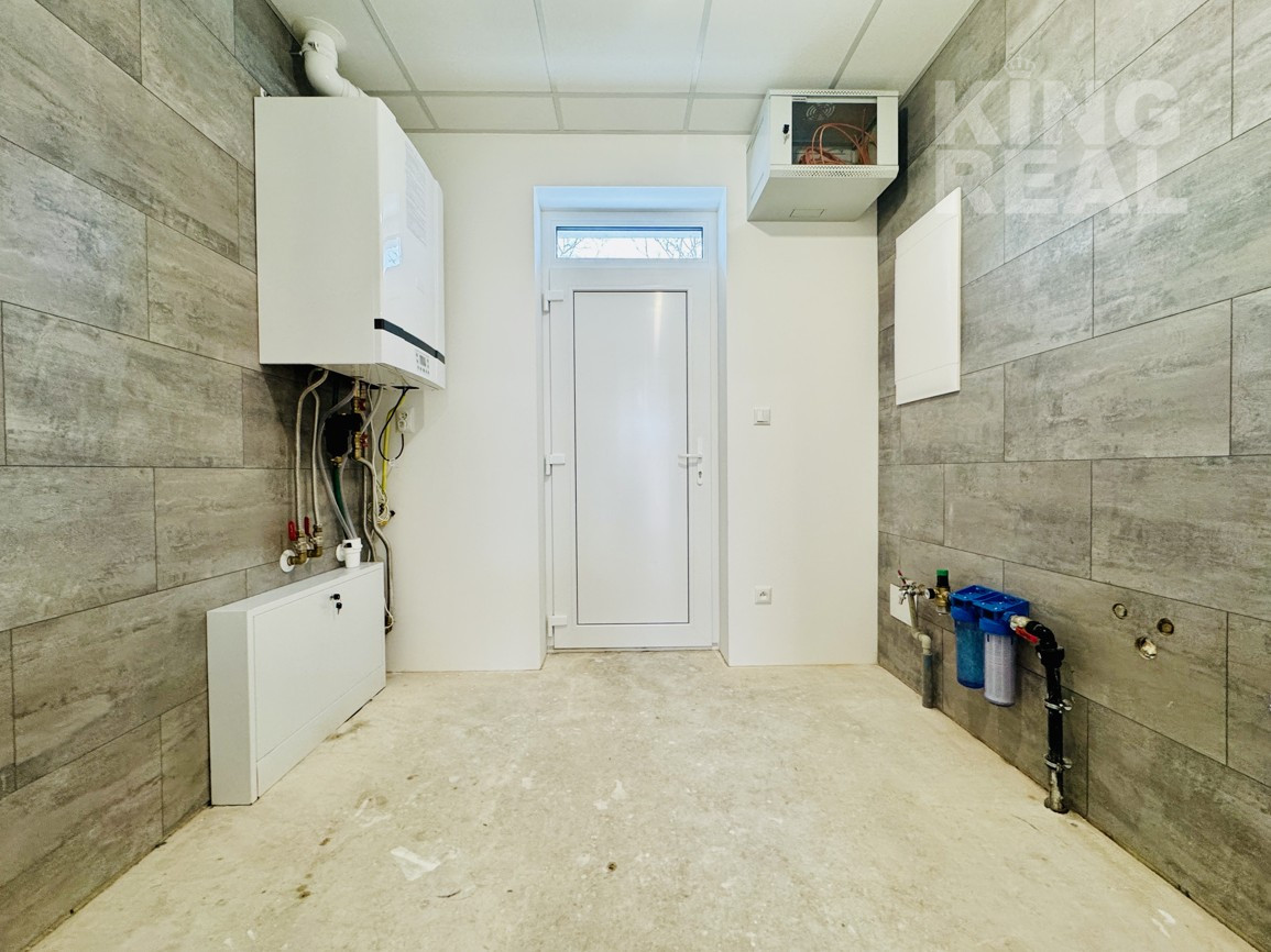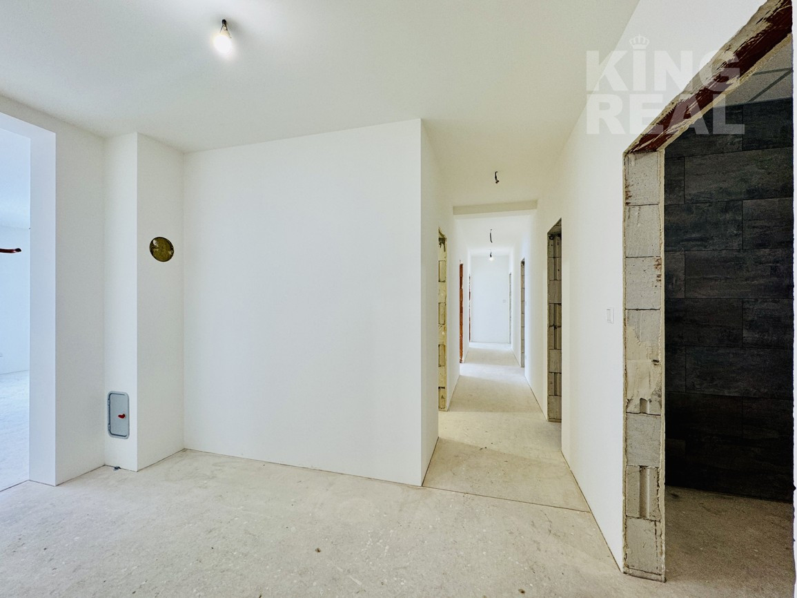 Zádverie, chodba, obývacia izba prepojená s jedálňou a kuchyňou so vstupom na terasu, špajza, 2 x kúpeľňa s WC, 2 x detská izba, spálňa, 2 x šatník, technická miestnosť.