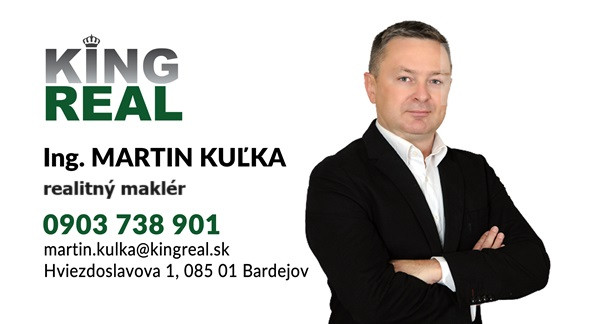 V prípade záujmu ma neváhajte kontaktovať na tel. čísle 0903 738 901, mailom: martin.kulka@kingreal.sk alebo osobne v kancelárií KING REAL na ul. Hviezdoslavova 1 (Hotel pod Bránou).